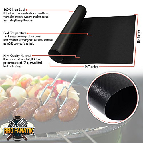 - FIBERGLASS CLOTH GRILL MAT: This 500°F rated non-stick mat leaves perfect grill marks and yet keeps your meat's flavor intact - allowing you to grill 100% free of butter, oil, grease, fat, or flouring for healthier low-calorie food and hassle-free cooking