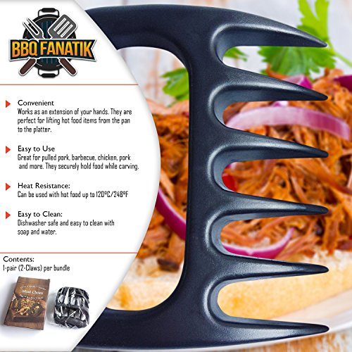 - 6-POINT MEAT CLAWS: Crafted from BPA-free polycarbonate, these claws resist heat up to +248 degrees so you can shred meat without burning your hands, and you can lift hot food for effortless transfers from pan to platter, PLUS enjoy care-free carving without that clumsy carving fork