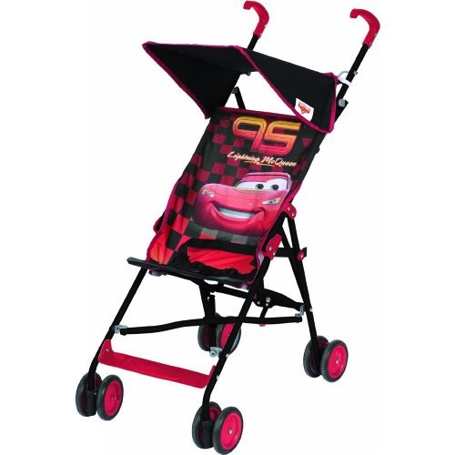 This adorable Disney's Cars Umbrella Stroller with a full size image of will make going for a walk great fun. * Features: * Lightweight for convenience. Weighs only 10.33 lbs. * Dimensions: Open: 38"H x 28" x 18" * Accommodates child weighing up to 30 lbs. *Dual front swivel wheels