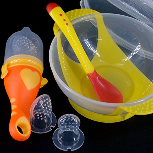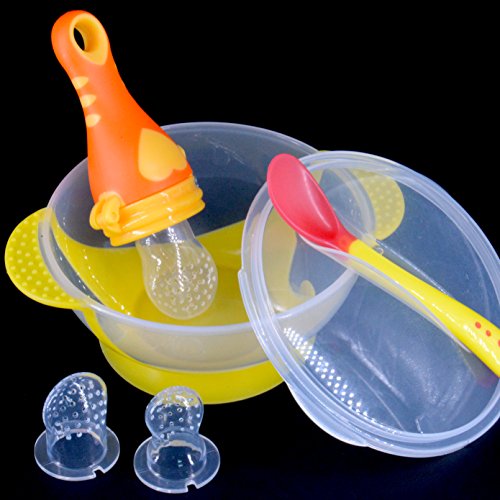 Baby & Toddler Fruit Feeder / Pacifier / Infant Teething Tool + Bowl (with table suction) + Silicone Spoon