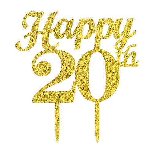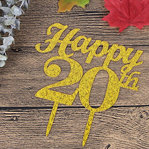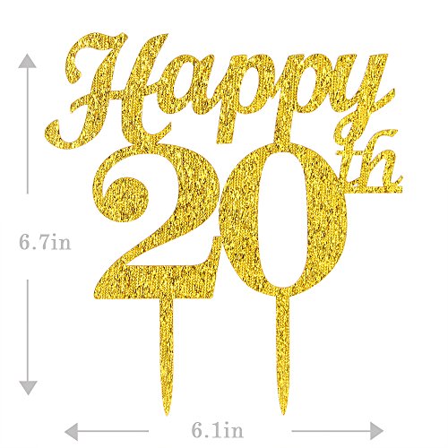 Gold Happy 20th Birthday Cake Topper - Wedding Anniversary Party Decoration Photo Props
