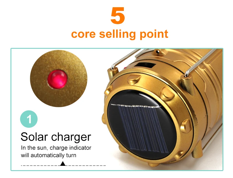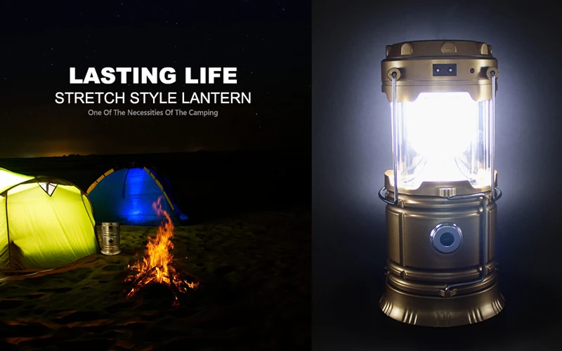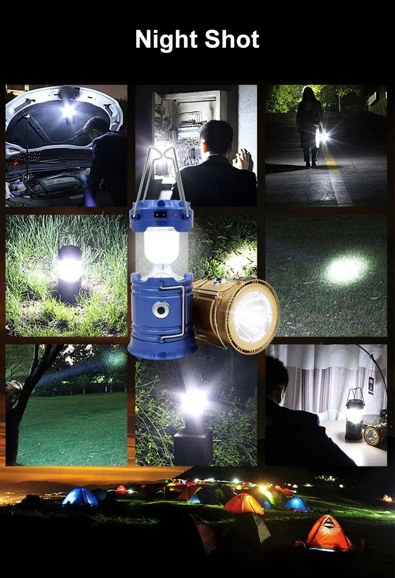 Rechargeable Camping light Led collapsible Portable light 6 LEDs Tent Hanging lamp Solar Camping Lantern Outdoor Lighting Hiking