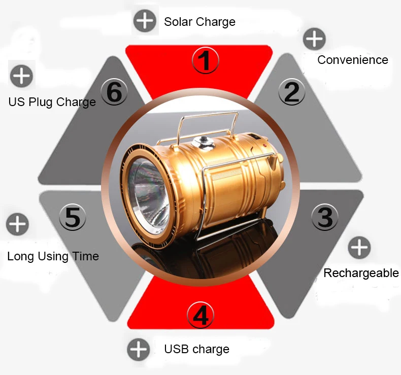 充电露营灯LED折叠便携灯6 LED帐篷吊灯太阳能野营灯户外照明徒步旅行