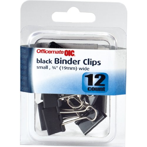 Officemate OIC Small Binder Clips, Black, 12 in a Pack (31085)