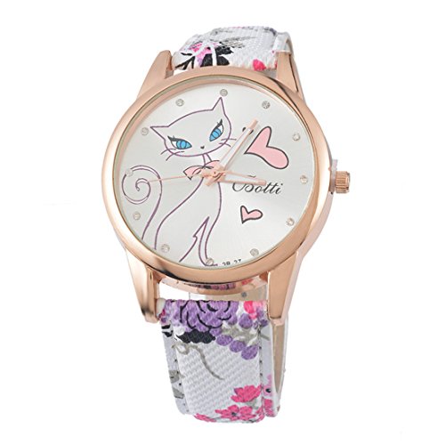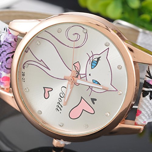 -. Title : Souarts Womens Pink Flower Pattern Band Cat Pattern Dial Quartz Analog Wrist Watch 24cm