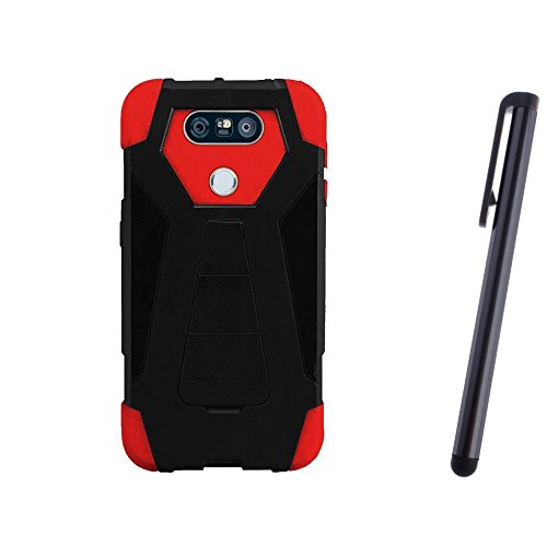 -. Title : LG G6 H870 Case, Fincibo (TM) Hybrid Transformer Dual Layer Hard Gel Protector Cover With Kickstand, Black/ Red + Stylus Pen
