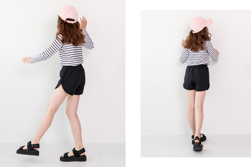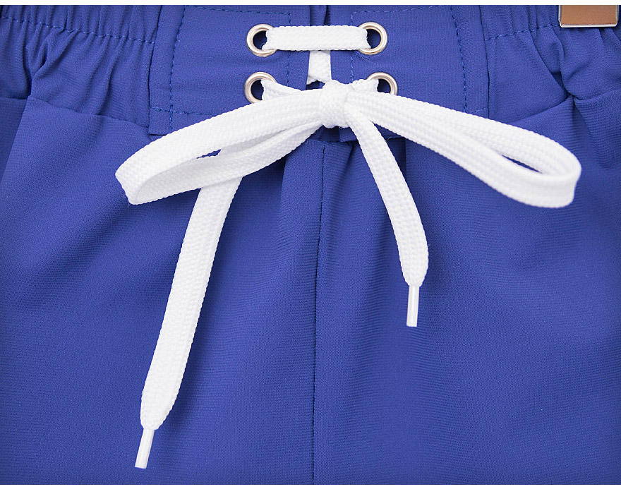 촉감이 좋은 폴리에스터 원단으로 디자인한 반바지이며, 고급스럽고 트렌디한 웨이크 숏 팬츠입니다. 한쪽 부분은 로고 와펜이 있어서 포인트가 되며, 앞판에는 밴딩에는 끈이 있어서 체형에 맞게 입을 수 있습니다. 또한 옆선에 살짝 트여있어서 활동성 또한 우수합니다.