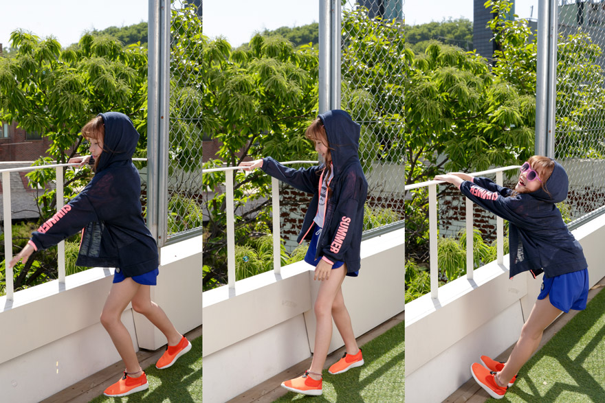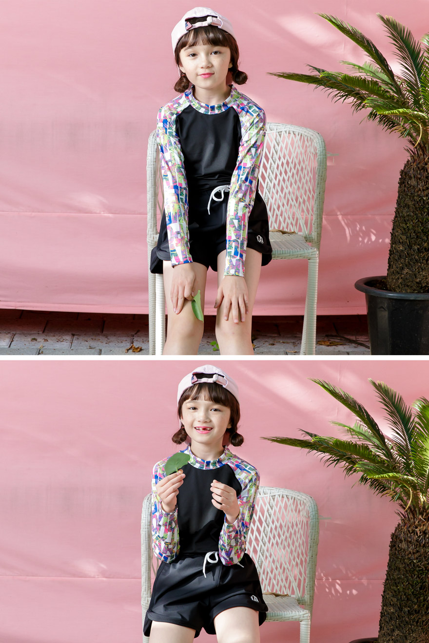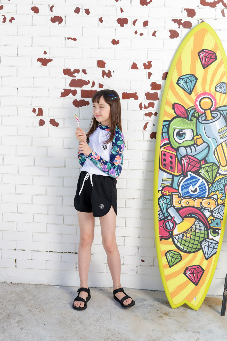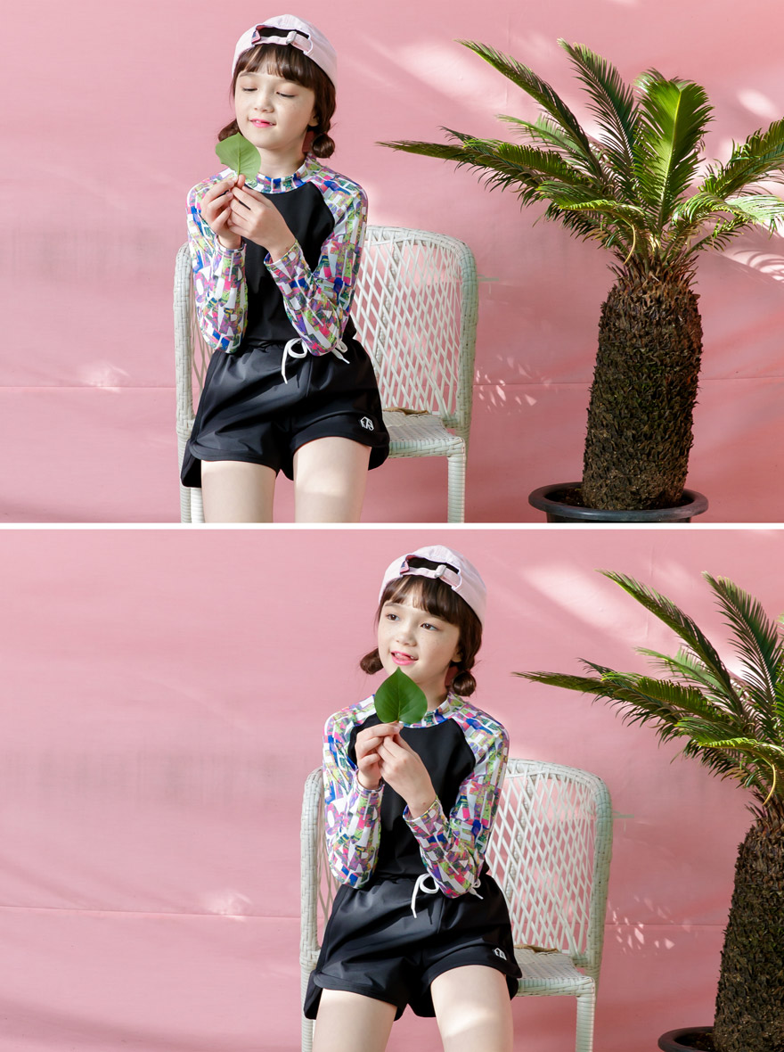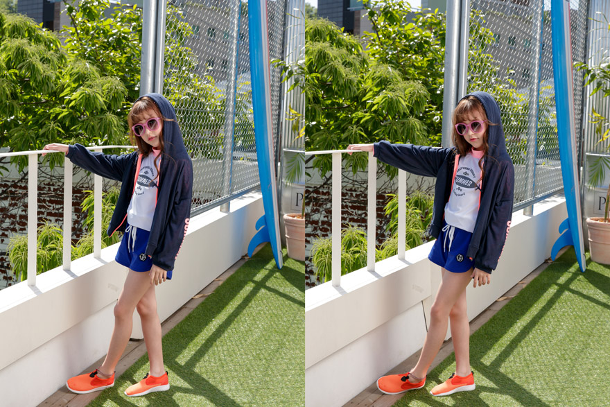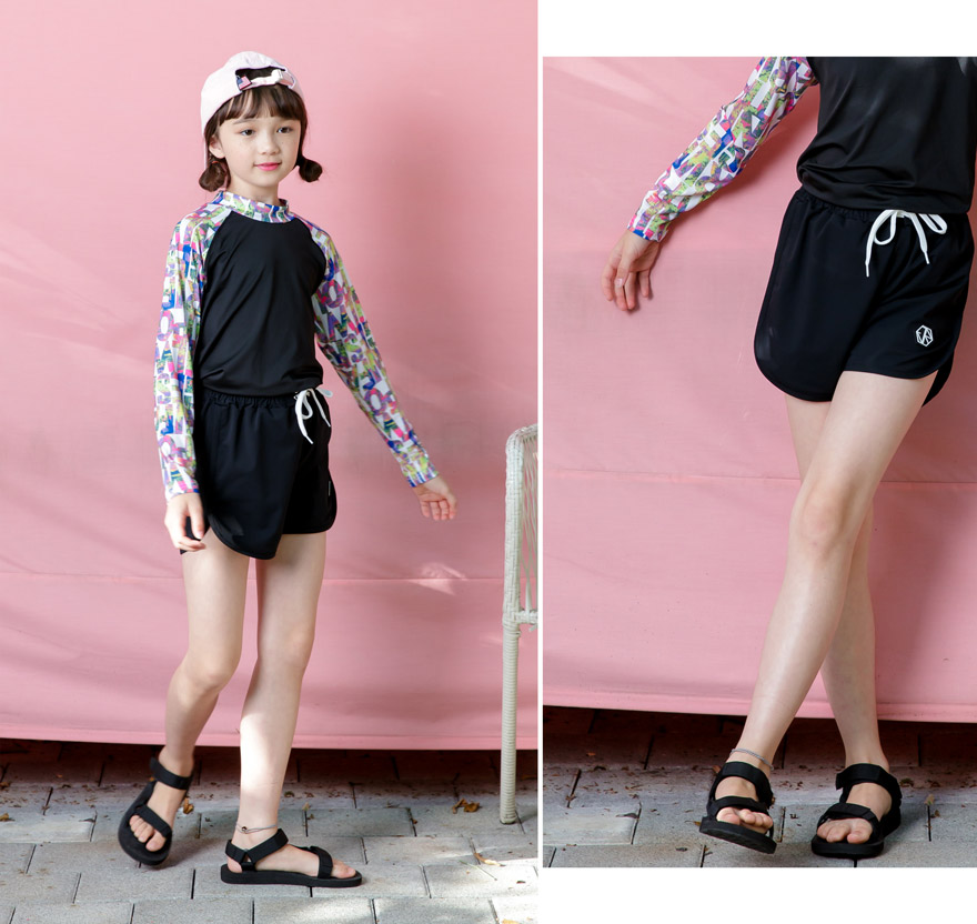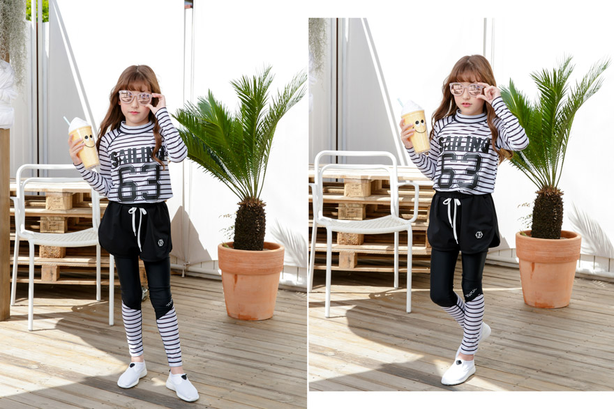 9, 11, 13, 15, 17호로 준비되어 있으며 하단에 측정된 사이즈 표를 참고해 주세요. 이 제품은 표준 사이즈로 디자인 된 제품입니다. 올리비안은 128cm에 20kg으로 다소 마른체격이며, 넉넉하게 로얄블루, 블랙 9호를 착용하였습니다. 엘리는 137cm에 30kg으로 다소 마른체격이며, 넉넉하게 블랙 11호를 착용하였습니다. 깔끔한 핏으로 잘 맞네요 ;)