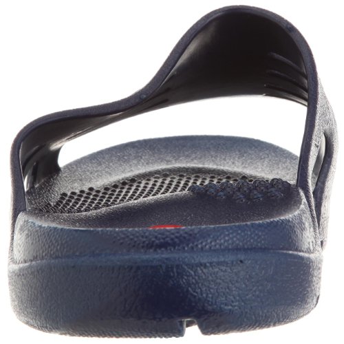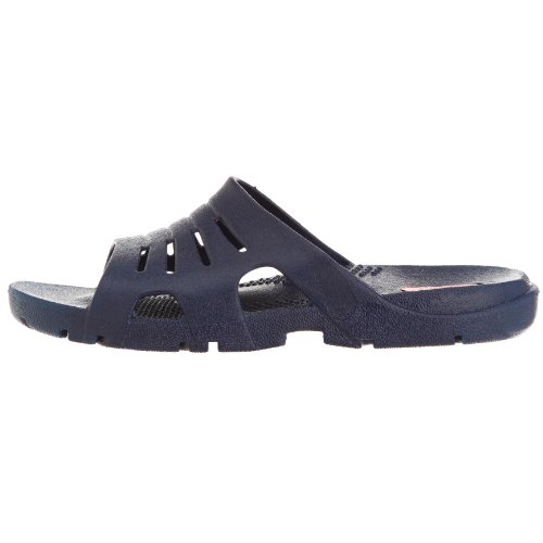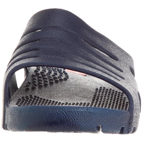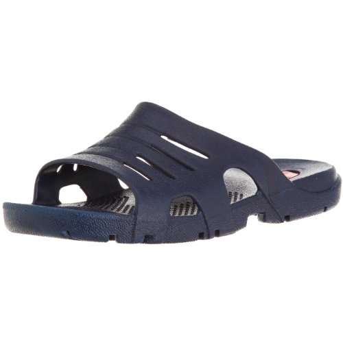 -. Feature : Perfect for the locker room�popular for its sporty design and durable construction / Massaging insole, ergonomic foot-bed and superior arch support / Microplast material is anti-slip, anti-odor, vegan friendly and BPA free / Made in the USA out of 100% recyclable materials / Available in men's sizes 8-8.5 (L), 9-10 (LL), 10.5-11.5 (XL).