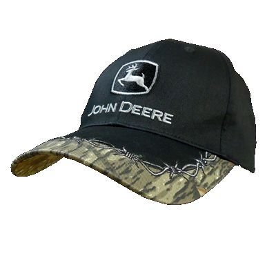 Product DescriptionJohn Deere twill baseball cap with a camo edge bill and barbed wire embroidery0