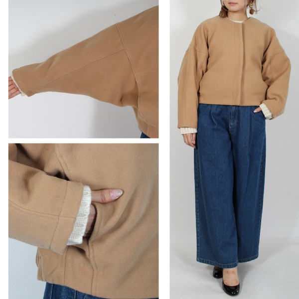フェイクウールのノーカラージャケット☆
