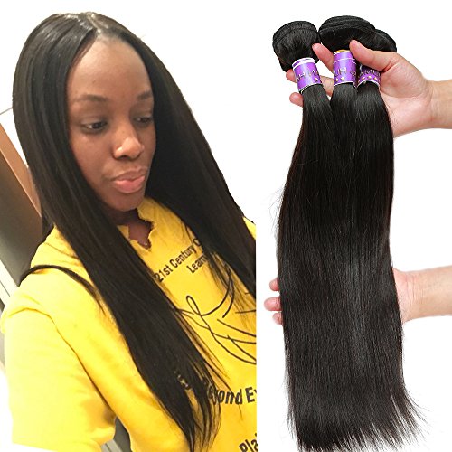 BLACKMOON HAIR(TM) 20 22 24 Inch Brazilian Unprocessed Virgin Remy Human Hair Extension Weave 3 Bundles Silky Straight Unprocessed Natural Color 95-100g/PC