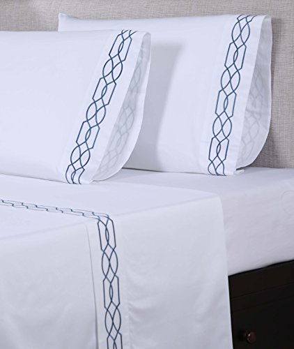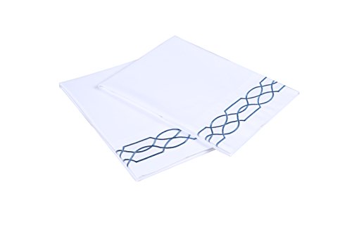 Affluence 600 Thread Count 100% Cotton Embroidered Pillowcase Sets - Lattice Pattern (King Pillowcase Set, White/Blue)