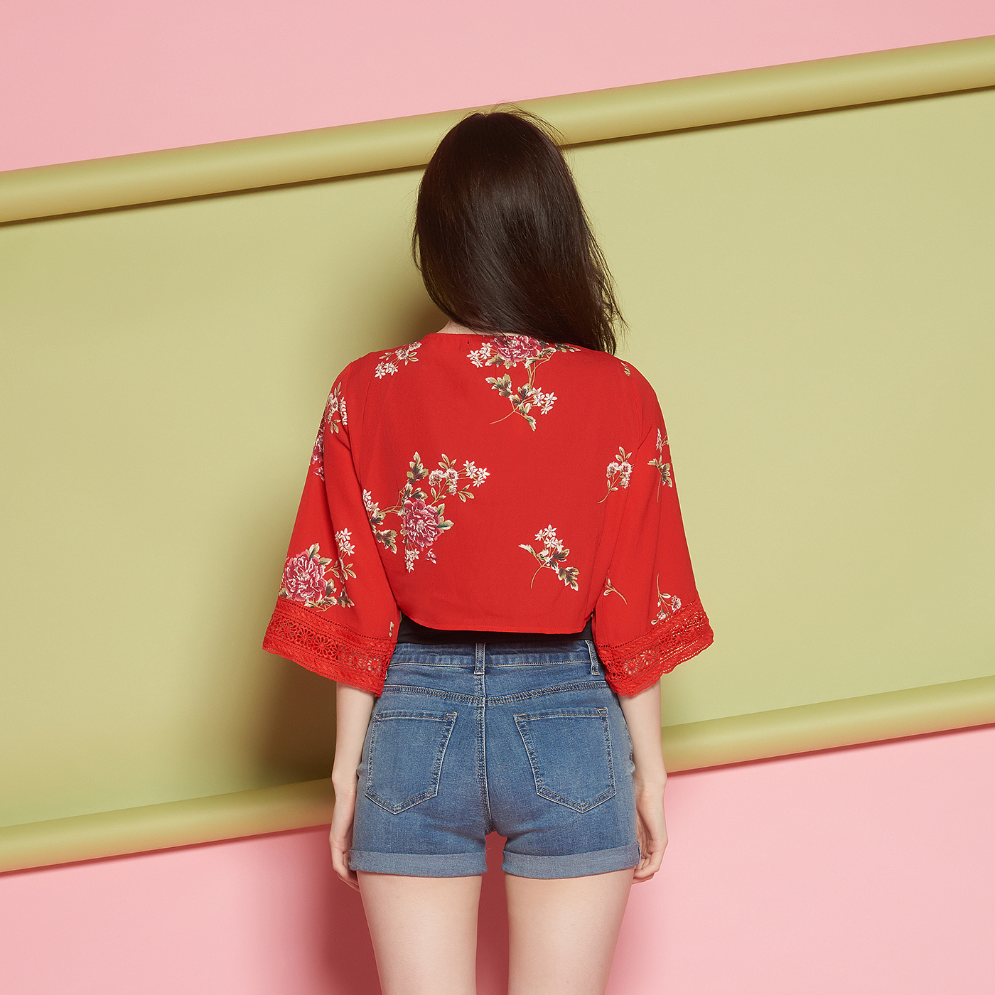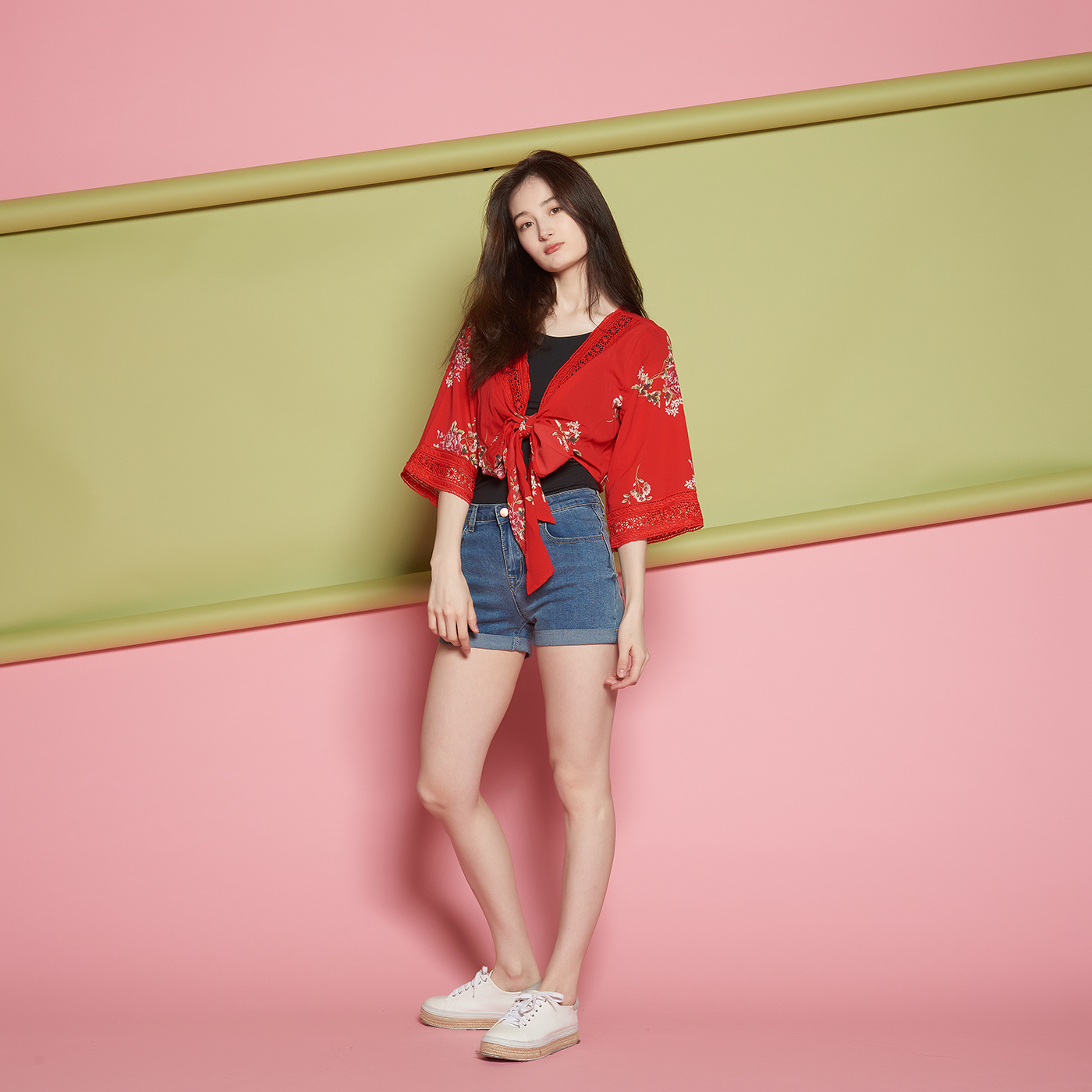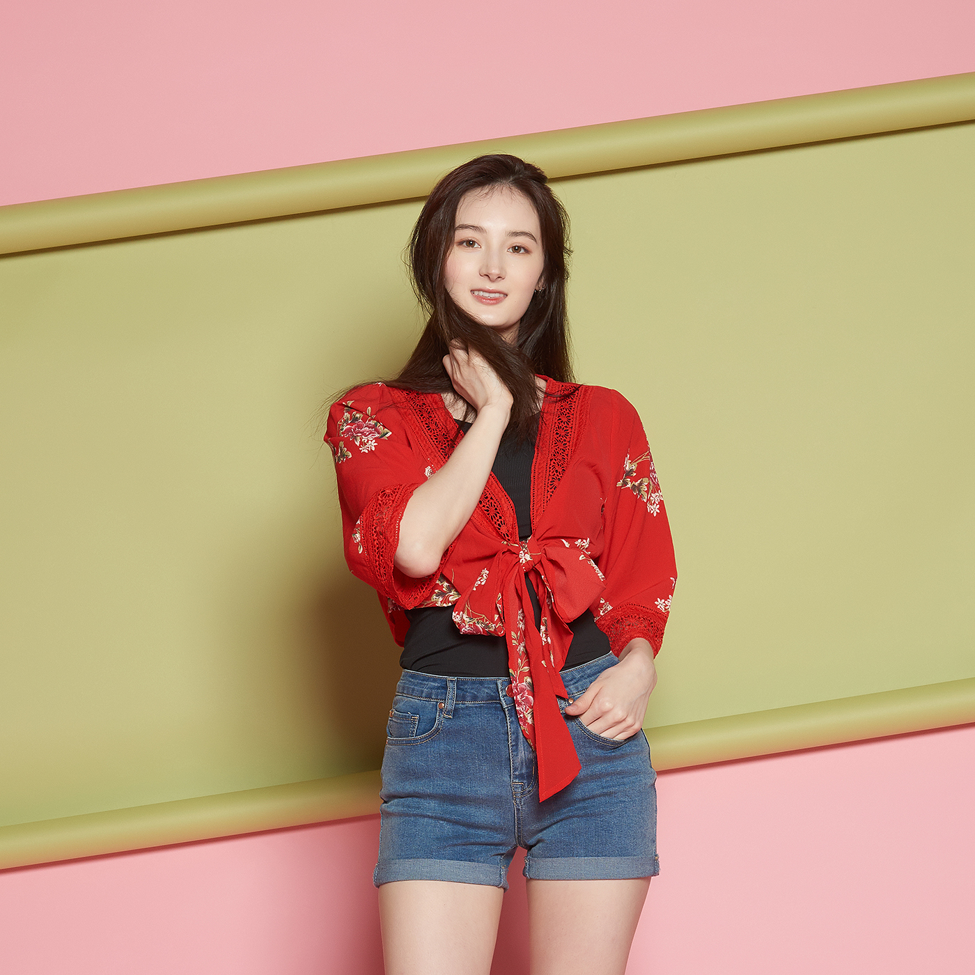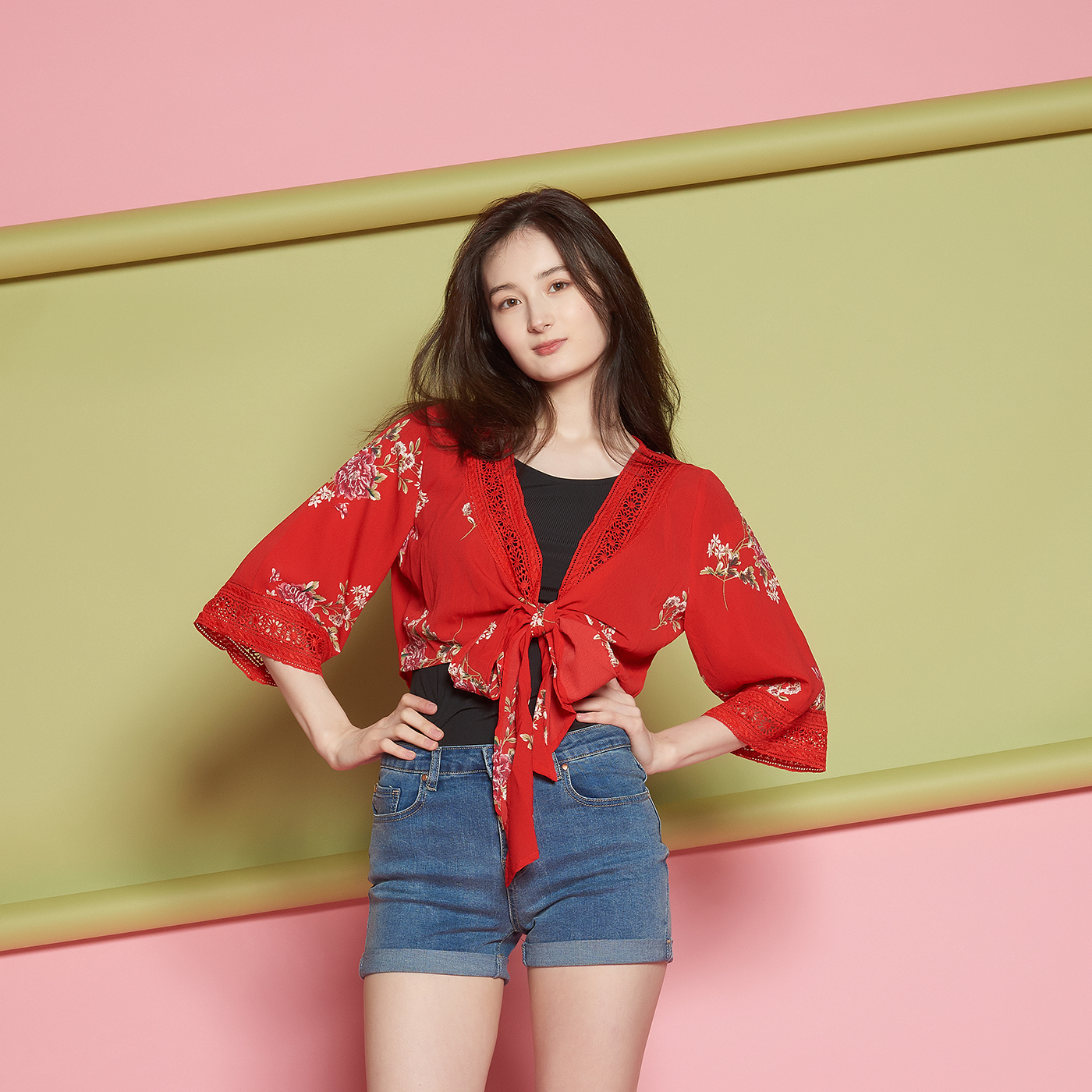 넥라인의 레이스가 고급스럽고 와이드소매의 퀄리티와 리본 디테일이