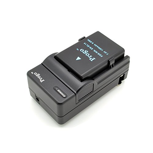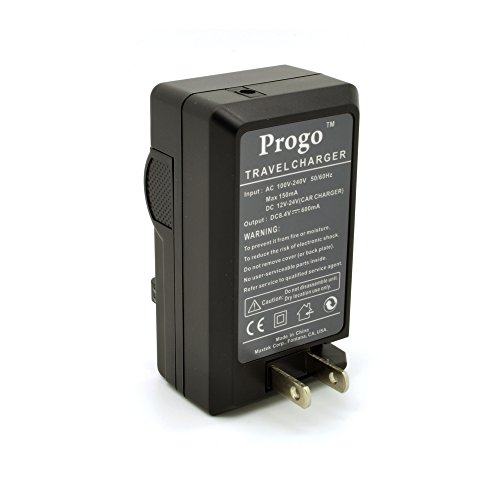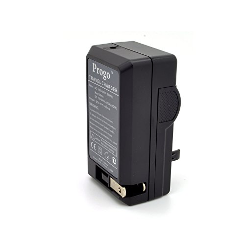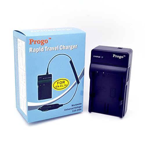 Progo Rapid AC/DC Travel Charger with Fold-In Wall Plug and Car, EU Adapters for Nikon EN-EL14 Battery