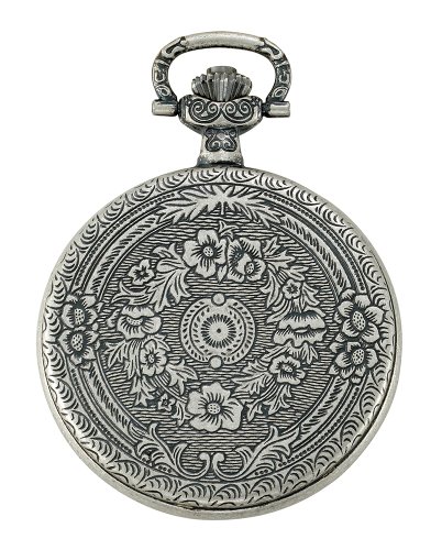 -. Feature : Gotham men's antique silver plated Swiss quartz covered pocket watch with elegant etched design / Precision Swiss quartz date movement / Scratch resistant mineral crystal / Includes matching 14" curb pocket watch chain with sP.R.Ing ring attachment / Arrives with deluxe draw string pouch and gift box, operating instructions, Selvyt polishing cloth and lifetime limited warranty card