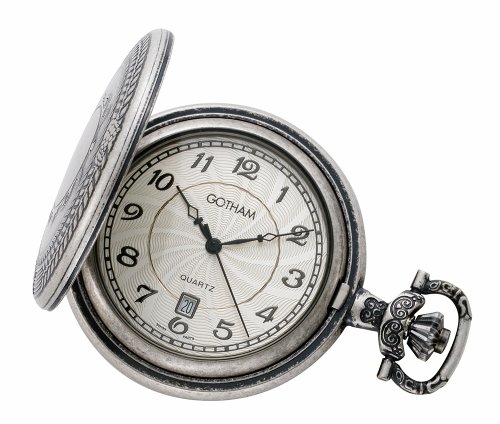 -. Title : Gotham Men's Antiqued Silver-Tone Swiss Quartz Date Covered Pocket Watch # GWC14079S