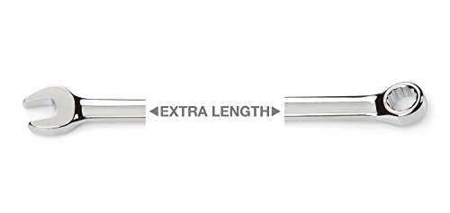 - Feature : Extra length offers extended reach and increased torque / Open end is angled 15 degrees for work in tight spaces / 12-point box end is offset 15 degrees, creating clearance for fingers / Premium quality chrome vanadium steel with mirror chrome plated finish / Includes Store and Go Keeper with space-saving folding handle and non-slip grippers to lock in wrenches