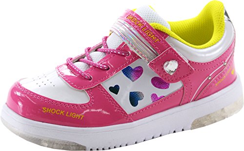 -. Feature : 歩くたびにLEDライトが光る!女の子にオススメのキュートなハートいっぱいのデザイン!ガールズベルクロシューズです。 / ベルクロ&ゴム紐タイプで脱ぎ履きが簡単!片側開きでベロがずれにくいのでたくさん動ける♪ / アッパーのサイド部分がキラキラ光るから注目度抜群!ベルトのハートモチーフがカワイイ☆お出かけが楽しくなるアイテムです。
