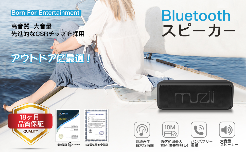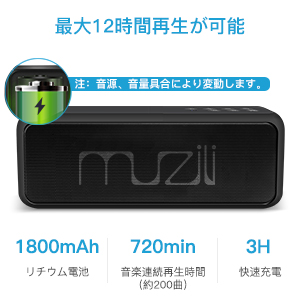 内蔵の1800mAh大容量リチウムイオンバッテリーと最先端の電力コントロールプログラムにより、8-12時間(中程度の音量で約200曲)の連続再生が可能です(※実際の再生可能時間は、音量と再生する内容によって多少異なります)。バーベキュー、キャンプ、友達とのパーティーなどに持って行ってもバッテリーを気にせず気楽的にお好みの音楽をお楽しみいただけます。