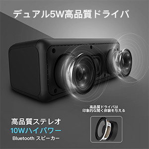 ✦高性能5Wx2ドライバー搭載し高い音圧と重低音を両立しています。また、低音を強化するの先端技術及びデジタル信号処理(DSP)機能を採用したことにより、低音・高音の調整を行い音声が広がったような臨場感を体験出来て、クリアな音質としっかりした低音を実現して歪みのないお好きな音楽ををお楽しみいただけます。