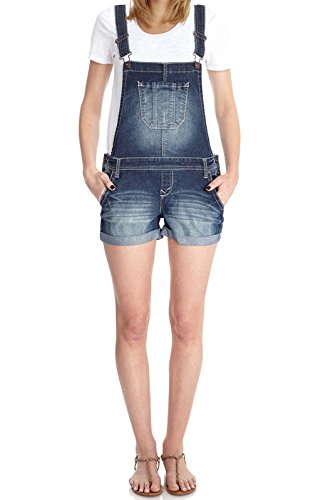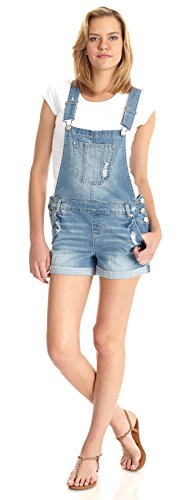 Casually cuffed shortalls featuring an oversized pocket detail on the bib and light destruction.
