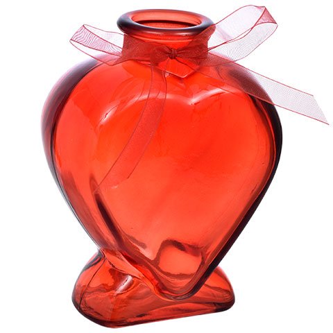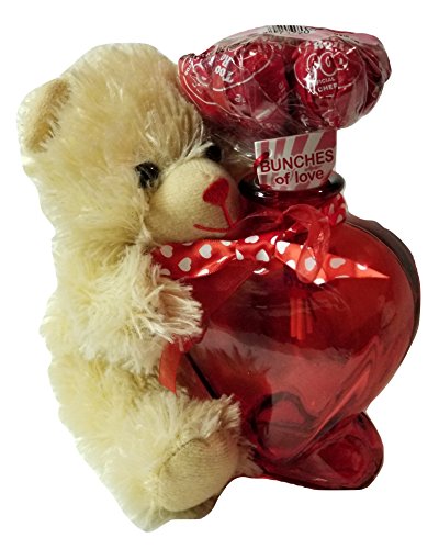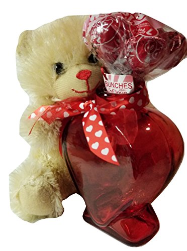 Heart-Shaped Red Glass Vases, Chocolate-Scented Plush Sitting Bear With Tootsie Bunch Pops Gift Set