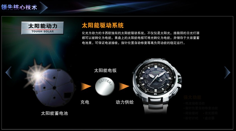 全球6局电波、太阳能驱动、TOUGH MOVEMENT强韧机芯;