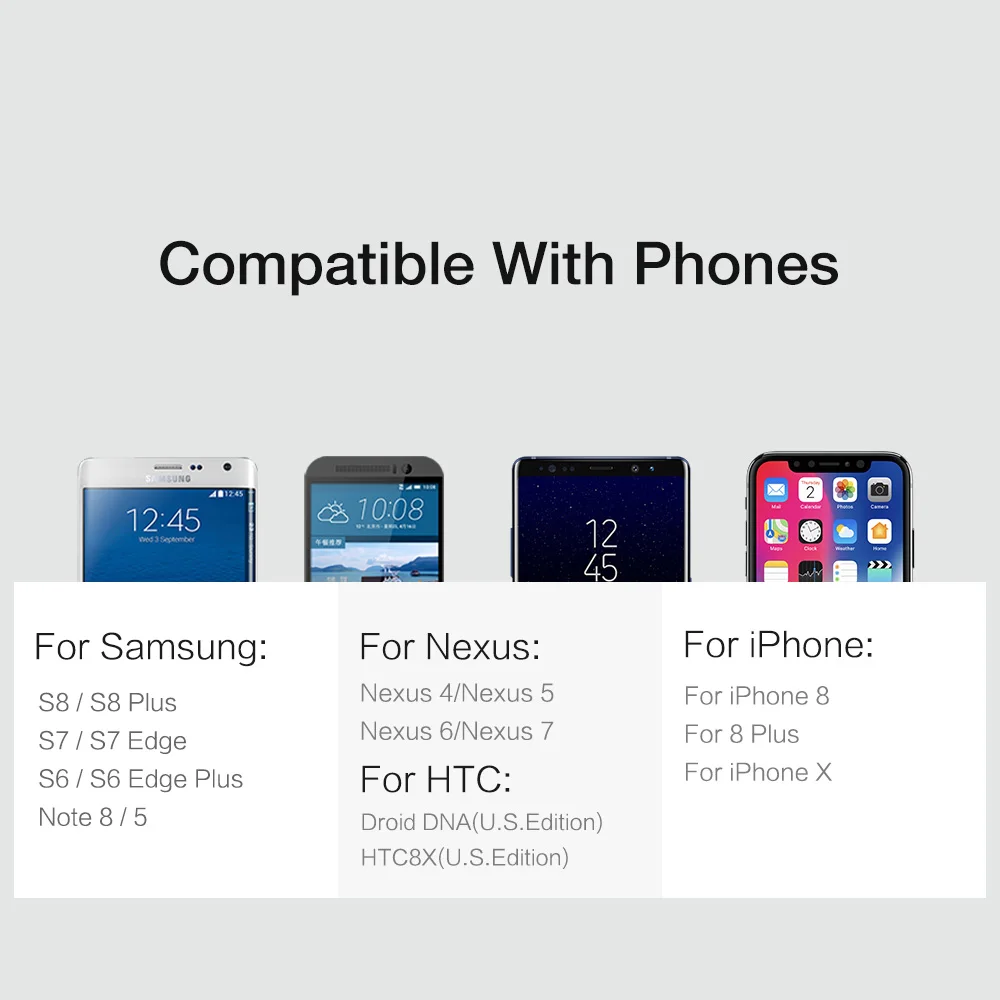 Compatible Model 1:For Samsung Galaxy S9 S8 Plus S7 S6 edge Note 8 5