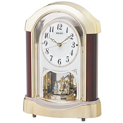 -. Feature : 本体サイズ:30×21×11.4cm / 素材・材質:木(マホガニー・茶木地塗装)、プラスチック枠(金色光沢)、前面:プラスチック / 原産国:タイ / ムーブメント:電波修正機能(40kHz/60kHz自動選局・受信OFF機能つき) / 付属品:単2(アルカリ)×2、単3(アルカリ)×1(電池寿命約1年間) / 正時20曲メロディ、光センサーによる自動鳴止め / 音量調節、報時モニター機能 / 一方向回転飾り(スワロフスキー®・クリスタル使用)、スイープセコンド