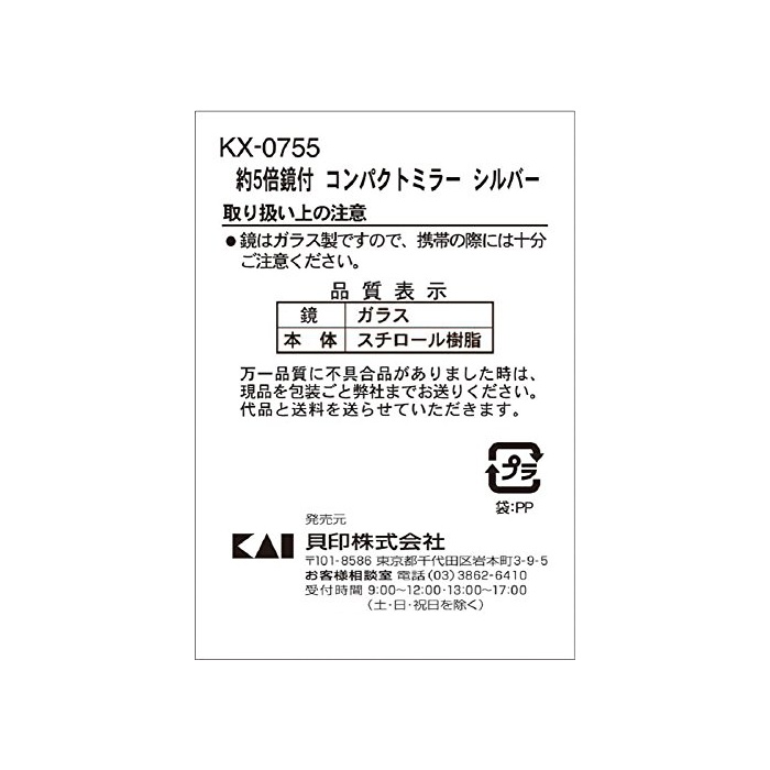 원본상품명: 貝印 5倍?大鏡付コンパクトミラ? シルバ? KX0755