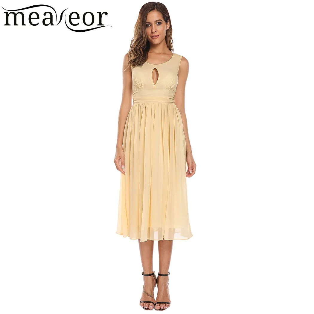 Feature:: O-Neck Sleeveless Ruched Waist