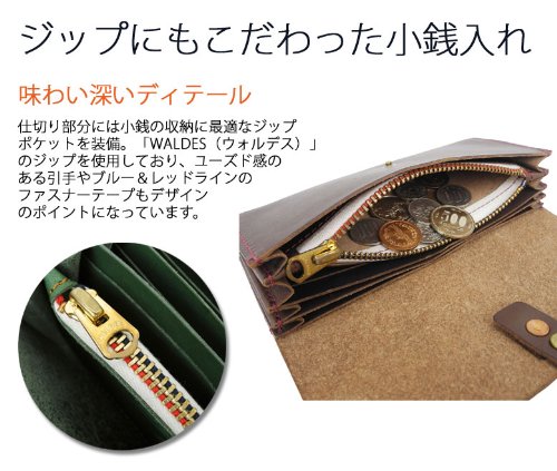 -. Feature : 【素材】牛革(ステアハイド、Italian Vegetable Tanned Leather)「conceria800」製 / 【サイズ】W190×H95×D30(mm) / 【重量】約 260グラム / 【生産国】日本 / 【内側】札入れ×4、小銭入れ×1、カードポケット×12、ポケット(L)×1