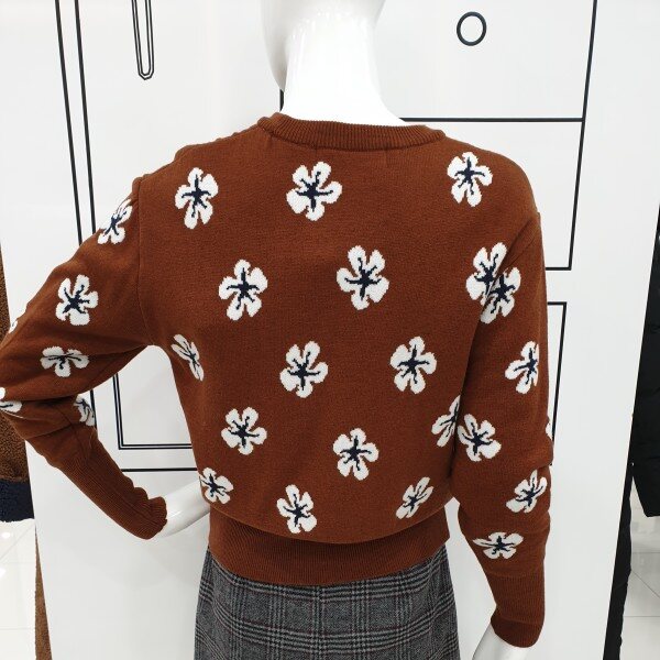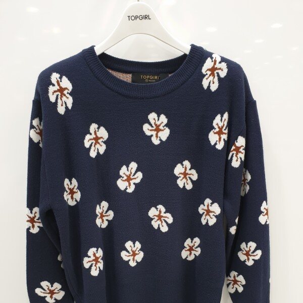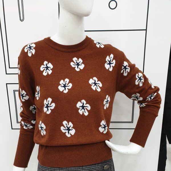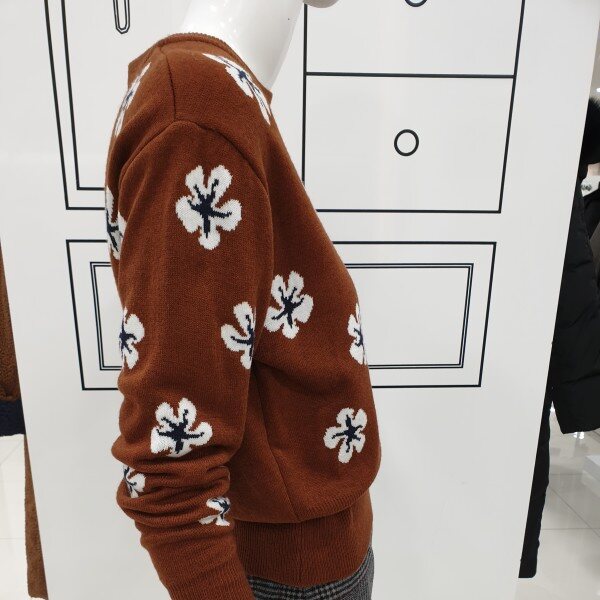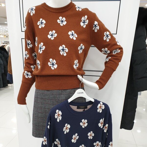 러블리함을 더한 라운드 니트로 여성스러우면서 캐쥬얼하게 코디할수 있습니다.