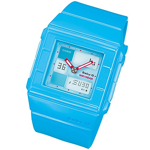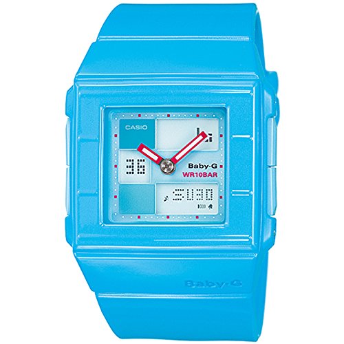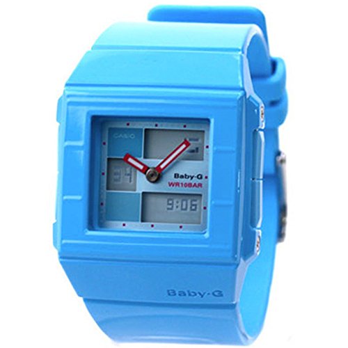 Brand, Seller, or Collection Name:Casio Model number:BGA-200-2EDR Part Number:BGA200-2E Model Year:2011 Item Shape:Square Dial window material type:Mineral Display Type:Analog digital Clasp:Buckle Case material:Blue Resin Case diameter:37 millimeters Case Thickness:13 millimeters Band Material:Resin Band length:Women's Standard Band width:20 millimeters Band Color:Blue Dial color:Blue Digital/Analog Bezel material:Fixed Calendar:Yes Special features:Stop watch Item weight:1.44 Ounces Movement:Quartz Water resistant depth:100 Meters