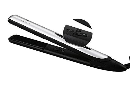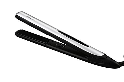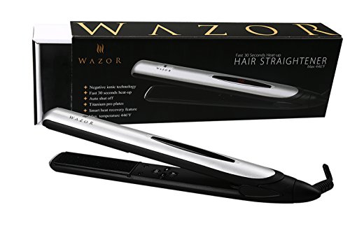Wazor professional hair flat iron features: Ceramic Tourmaline Coated Plates for added protection while styling your hair Tourmaline Ceramic Technology enables plate to produce a potent mass of negative ions which eliminates frizz and close the cuticle to create smooth, shiny hair, resulting in faster styling with less damage.