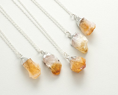 -. Title : Raw citrine crystal gemstone silver pendant necklace