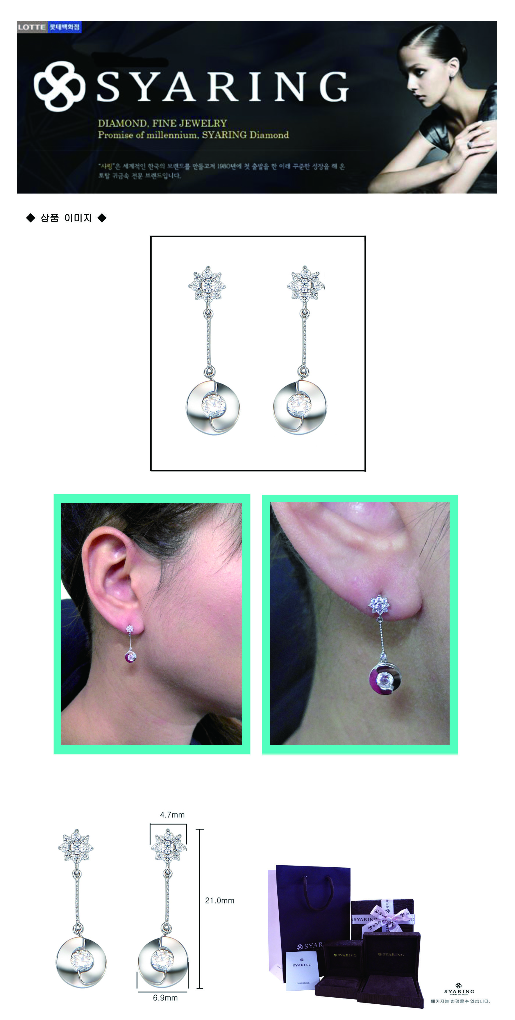 | 교환 및 반품 | * 샤링 제품은 고객 한분, 한분을 위한 주문제작 제품으로 교환 및 환불, 반품이 안되오니 신중한 구매 결정 부탁 드립니다. * 단, 샤링 제품의 도금불량, 조립불량 등 제품 제작상의 결함의 경우, 재정경제부가 고시(2006-36)한 소비자 피해 보상규정에 따라 보상해 드립니다. 그러나, 고객의 부주의가 인정되는 경우에는 보상해 드리지 않으니, 첨부된 제품보증서를 자세히 읽어 보시기 바랍니다. * 주문 취소할 경우, 주문 당일 24시간 이내에만 취소 가능합니다. * 상품 및 포장이 훼손되거나, 상품을 착용했을 경우에는 교환 및 반품이 불가능합니다. * 온라인에서 구매하신 상품은 백화점 매장에서 교환/반품이 불가능합니다. |