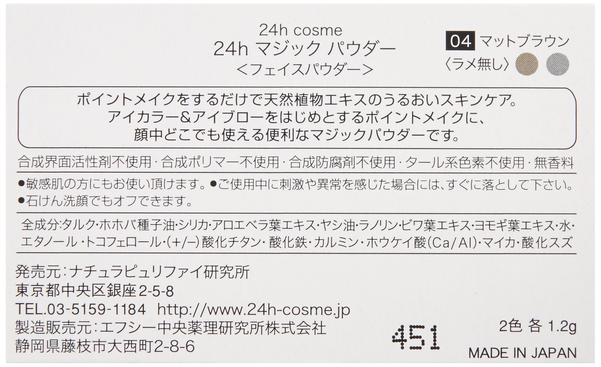 24h cosme Magic Powder 01. Pink with Lame (Ultra Natural Cosmetic from Japan)