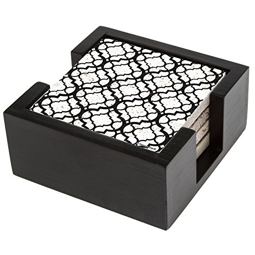 Thirstystone Travertine black Lattice Stone Drink Coaster Set with Holder Included, , Multicolored