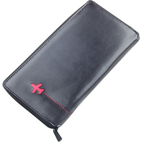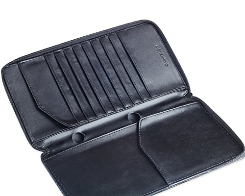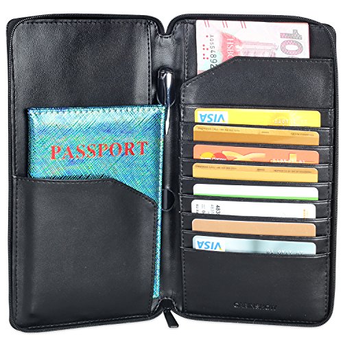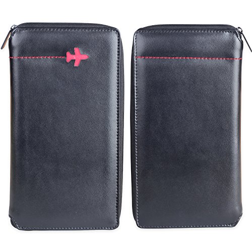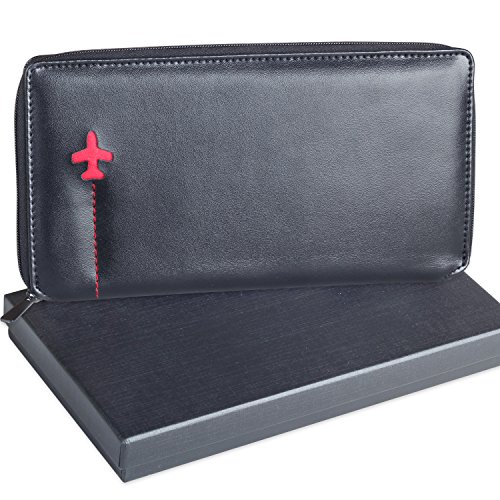 -. Feature : HIGH GRADE PU LEATHER: Made with high quality PU leather for a classy look. It has a smooth, soft and luxurious feel in your hands. / PERFECT GIFT: Packaged in a beautifully gift box. The perfect present for holidays, anniversaries, birthdays or the traveler in your life. / SPACIOUS: 12 total pockets include ID window, 9 card slots, 1 paper currency or receipt sections, 1 plane or train ticket holders and passport holder. / EASY ACCESS: Large external pocket for quick access to boarding passes. / SIZE: 8.3L X 4.6W X 0.6H Inch