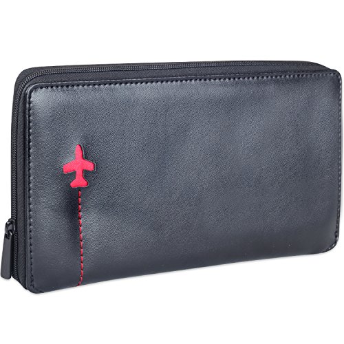 -. Title : Simmer Stone Leather Travel Document Organizer, Passport Holder With Zipper For Business Trip Also A Wallet ( Red )