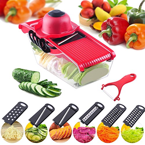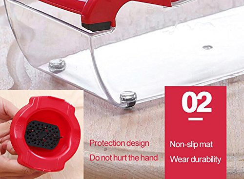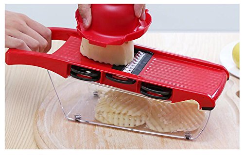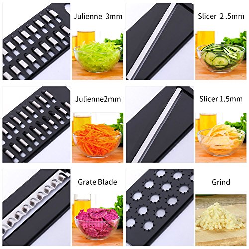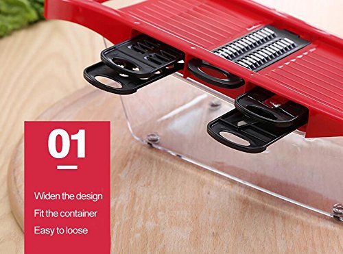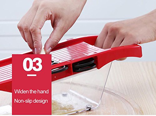 - ❤QUICK & EASY TO USE. It is very easy to use.Cut your fruit, potatoes and vegetables quickly and easily into uniform slices or Juliennes with the V-blade slicer.