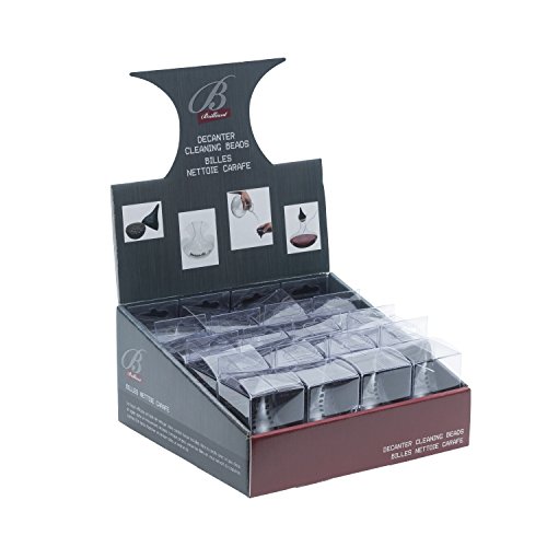 -. Feature : These stainless steel pellets remove dirt, sediment, residue and stains from those hard to reach spots in narrow neck and oddly shaped glass decanters, carafes, bottles, glass vases, coffee pots, glass vessels, containers or any other hard to clean glassware. / Supplied in a small convenient space saving container that features a strainer cap / To make these stainless steel cleaning beads work effectively, simply pour the cleaning balls into the decanter with some warm water and swirl until clean. / When done, pour the cleaning beads into the cap to dry and then store safely, to be reused again and again. / So handy and useful for wine enthusiasts and everyone else! Absolutely no scrubbing ever! Made in Taiwan.