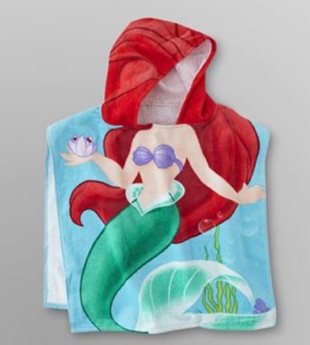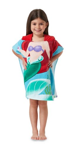 Your little mermaid will love drying off in this girl's Ariel hooded towel poncho from Disney. Perfect for busy bathrooms, this towel will have her feeling just like a princess and will turn bath time into fun time. The hood will help keep her warm after her bath or a dip in the pool, and the armholes make covering up quick and easy.