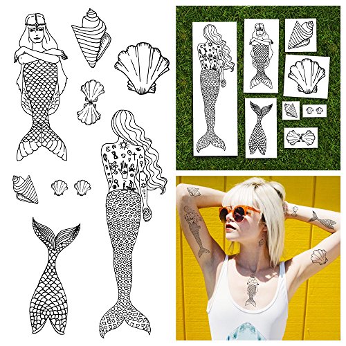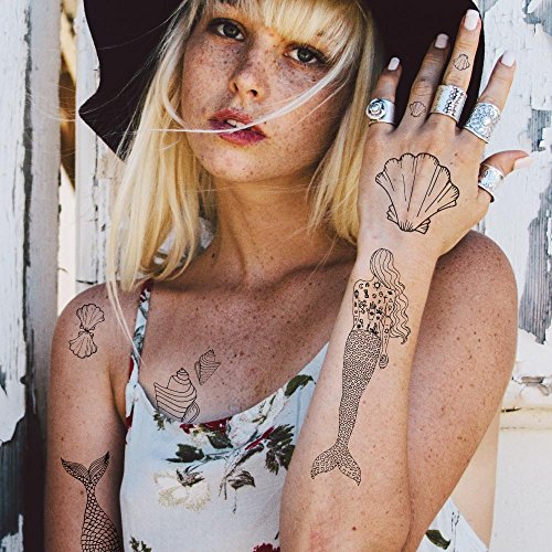-. Title : Tattify Traditional Mermaid and Seashell Temporary Tattoos - Mermuse (Set of 16) - Premium Quality, Long Lasting and Waterproof