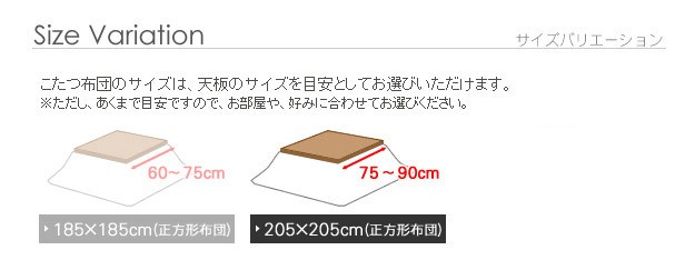 オススメこたつサイズ(約):60~75x60~75cm