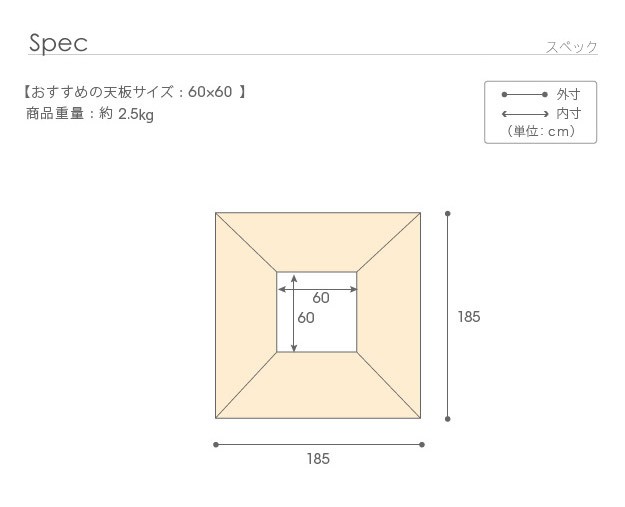 サイズ(cm):幅185x奥行185cm