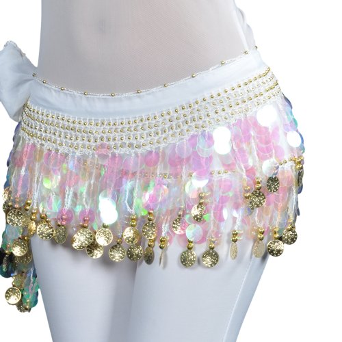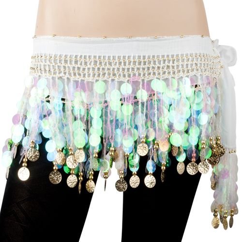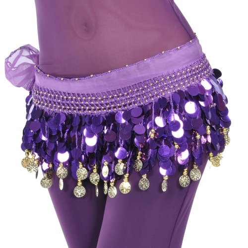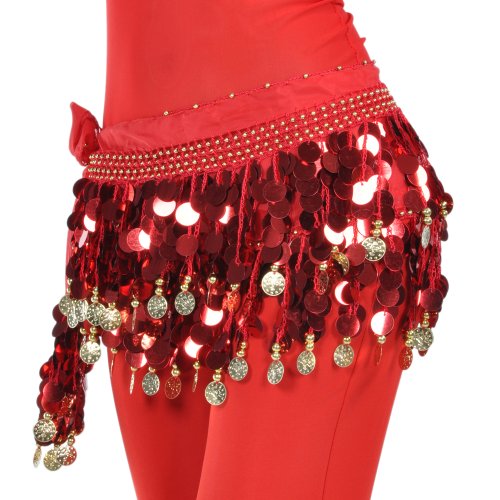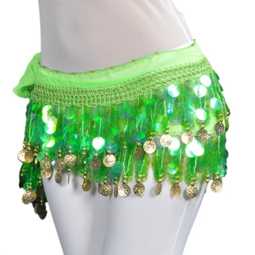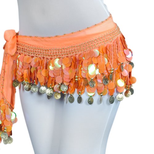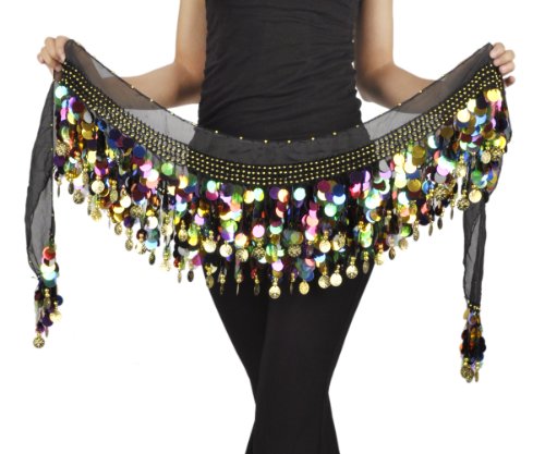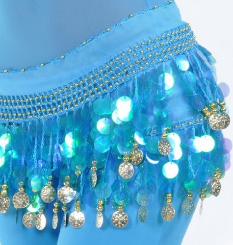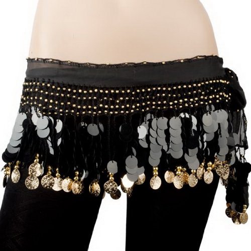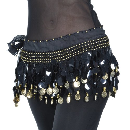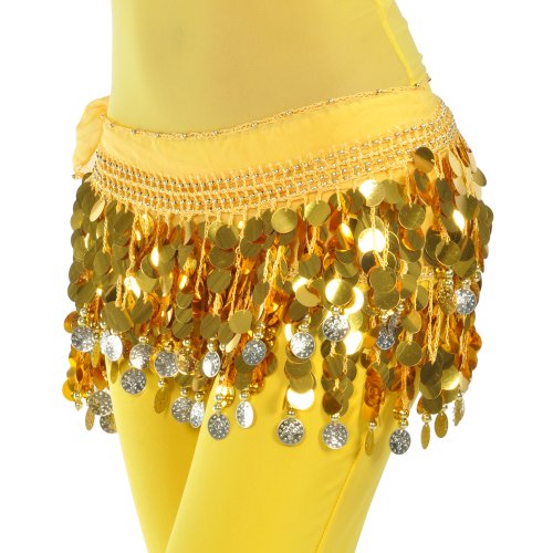 | BellyLady Belly Dance Hip Scarf With Paillettes, Gold Coins Lively Style |