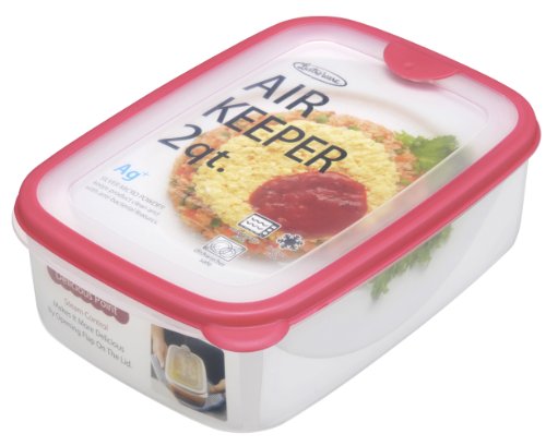 Lustroware A-036NP Air Keeper Rectangular Food Container with Anti-Bacterial Silver Treatment, 65-Ounce, Pink